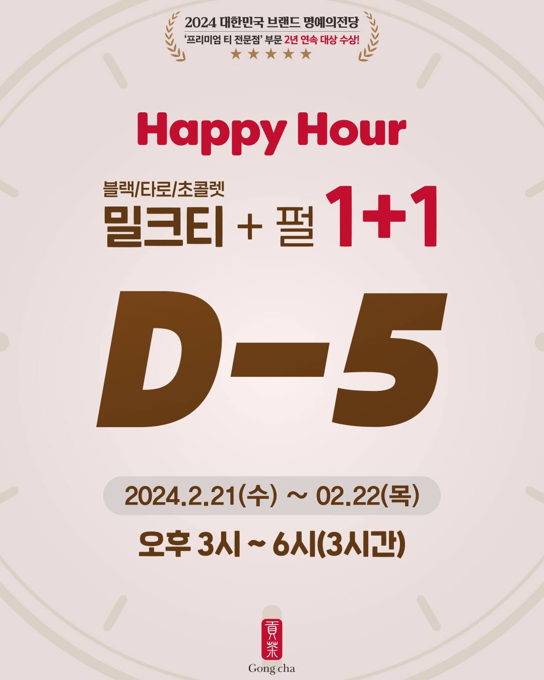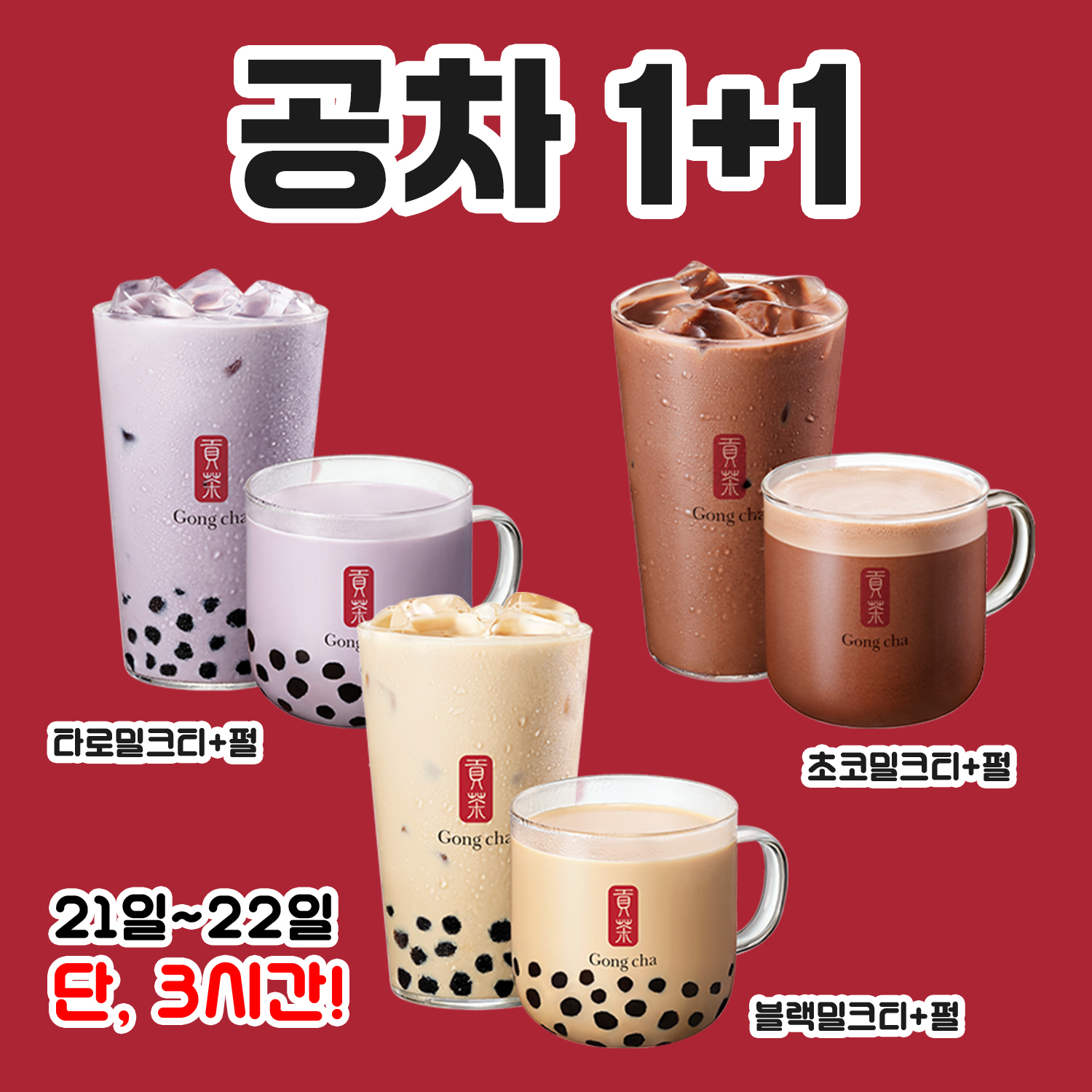 우선 가장 먼저 빠르게 알려드려야할 소식은 2월 21일 (수) ~ 22일 (목) 이틀간 공차 인기메뉴가 1+1 행사를 합니다.