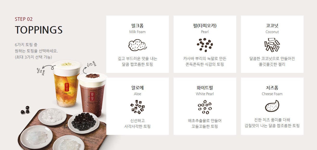 이렇게 원하는대로 조합을 선택하게 되면 나만의 공차 음료를 마실 수 있습니다 :)
