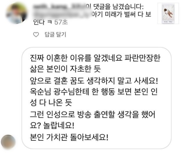 영철과 잘되는 모습이 좋아보였는데 개인적으로는 아쉬운 내용입니다. 아무쪼록 잘 해결되시길 바랍니다!