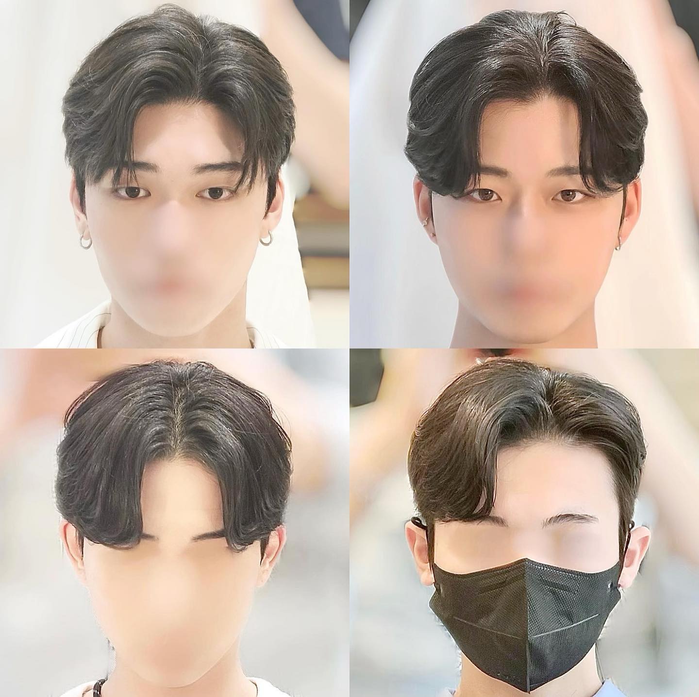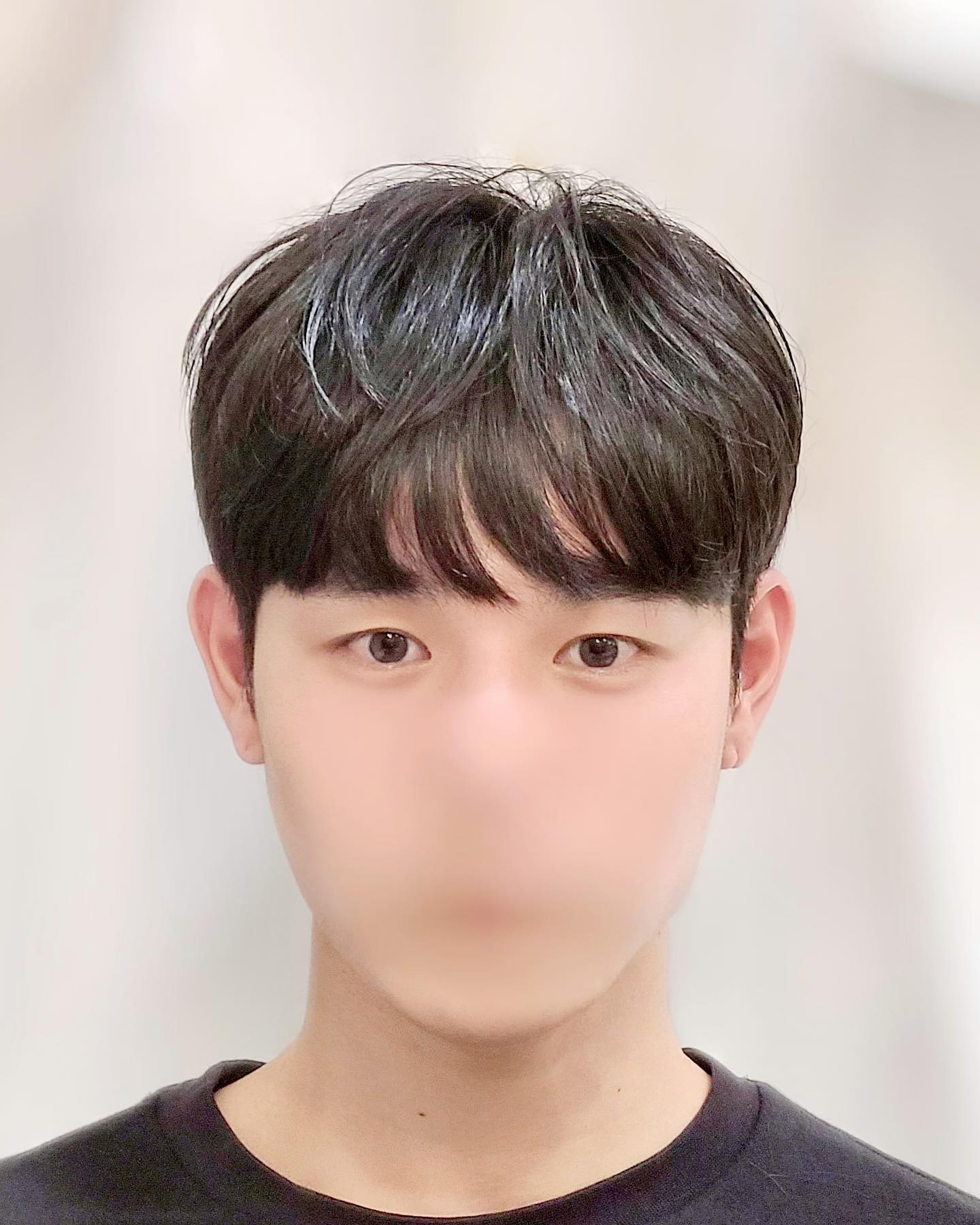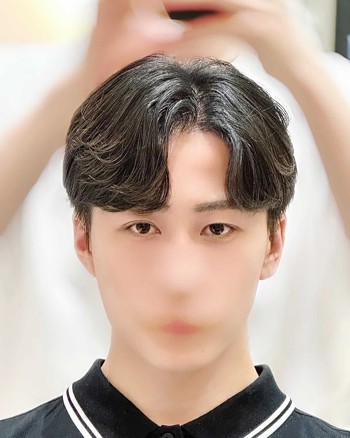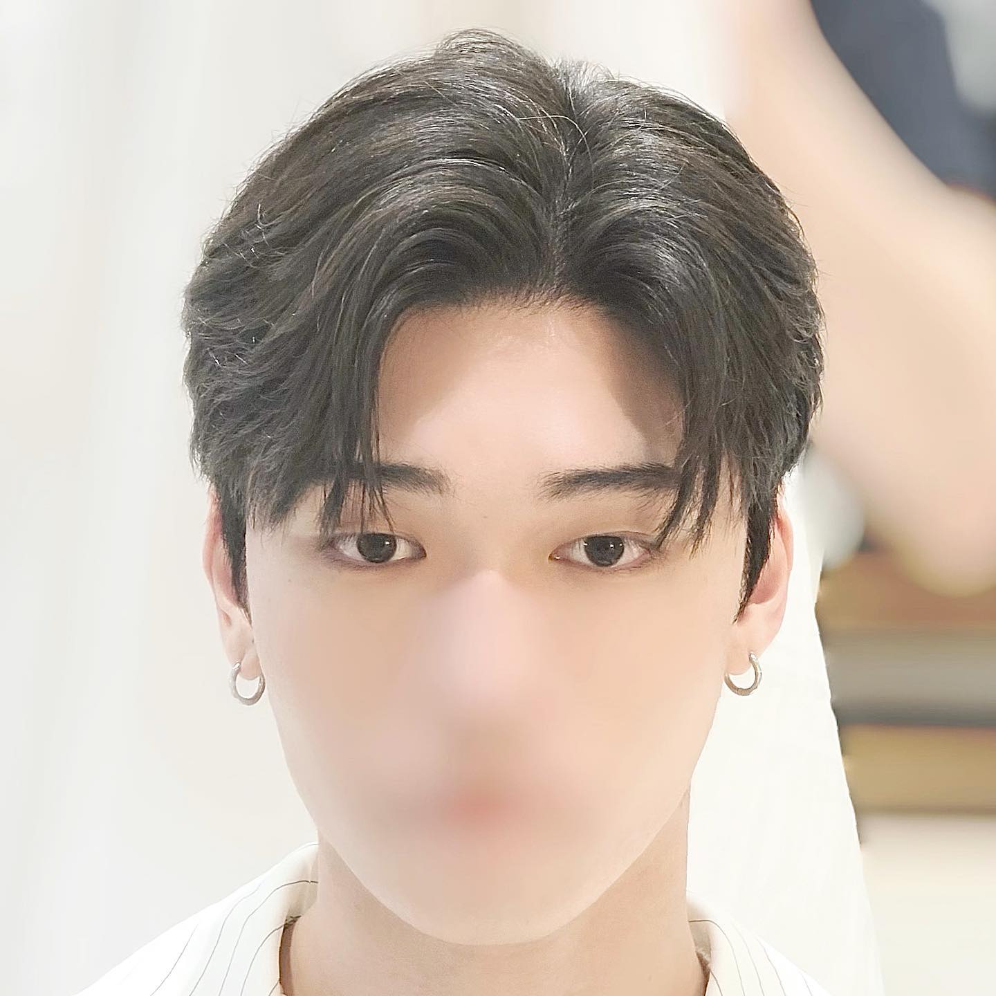 최우식, 피오님과 같은 계란형 얼굴의 귀여운 이미지의 남성분들이라면 컬감을 조금 더 세게 하셔도 너무 거칠지 않고 남성적이면서도 귀여운 느낌으로 연출할 수 있습니다.