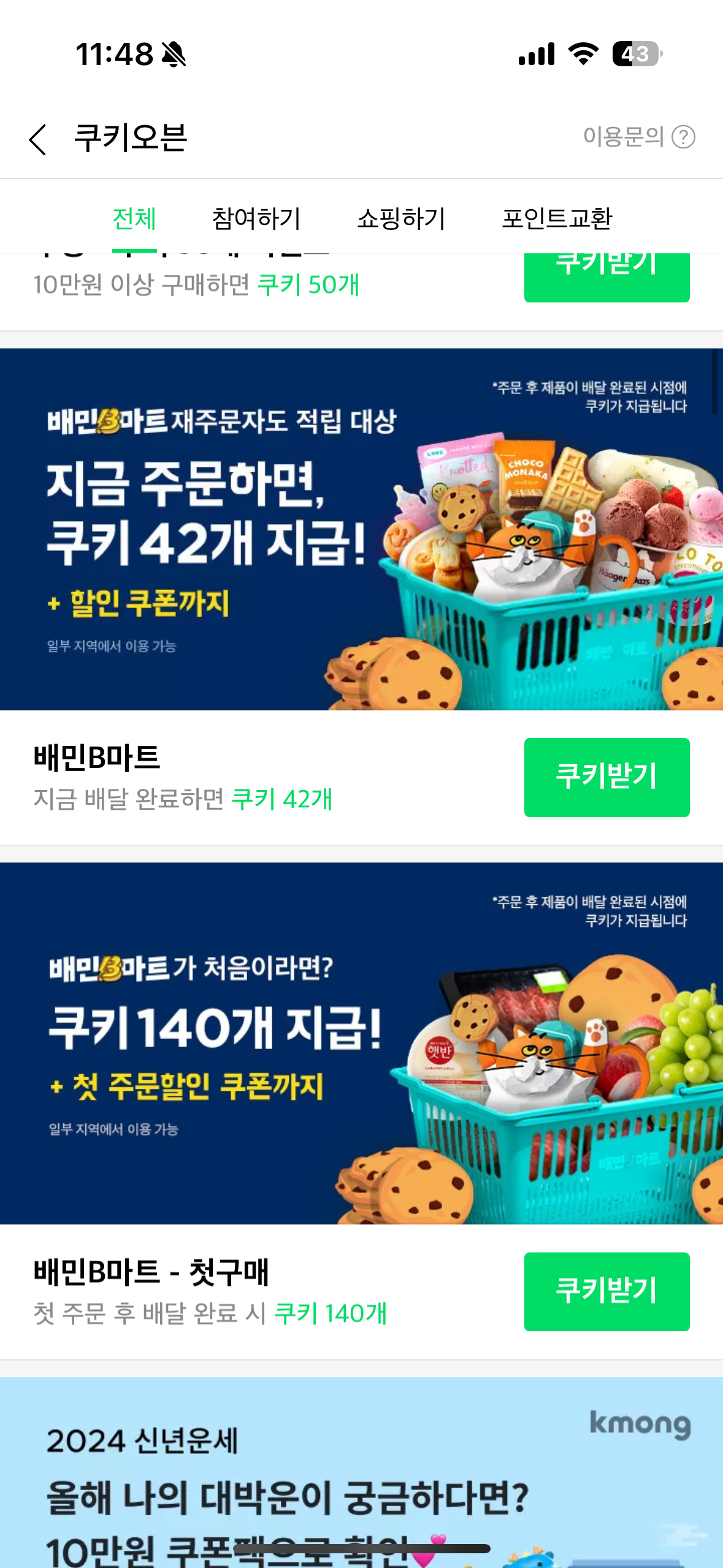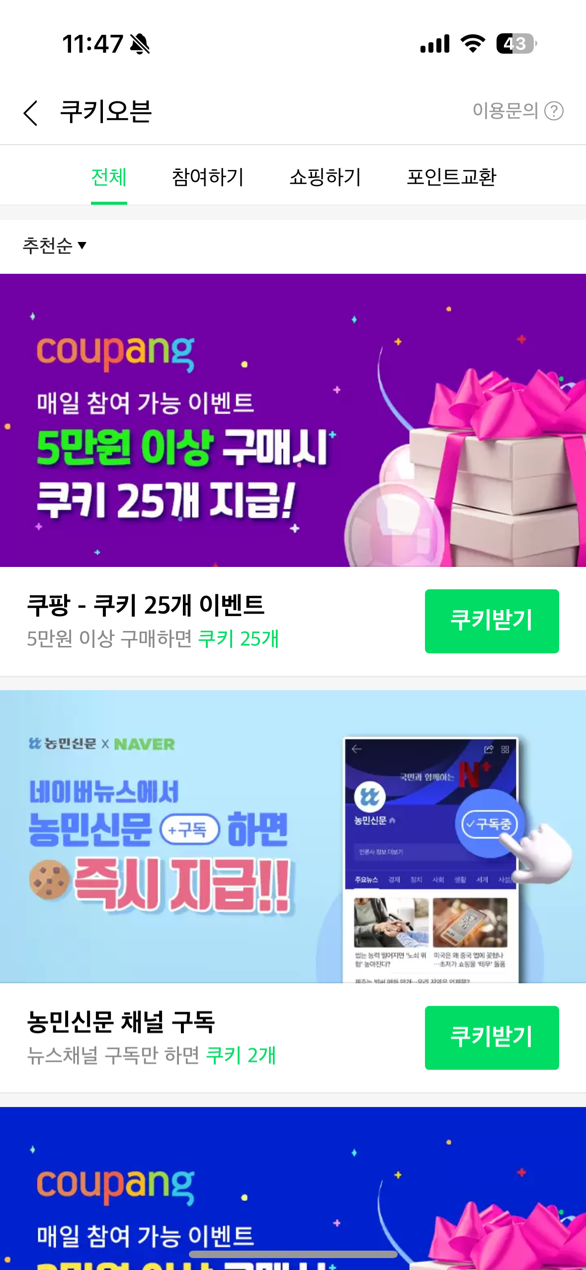 2) 쿠키오븐 창이 나오면 참여하기 리스트를 보고 가능한 이벤트를 참여합니다!