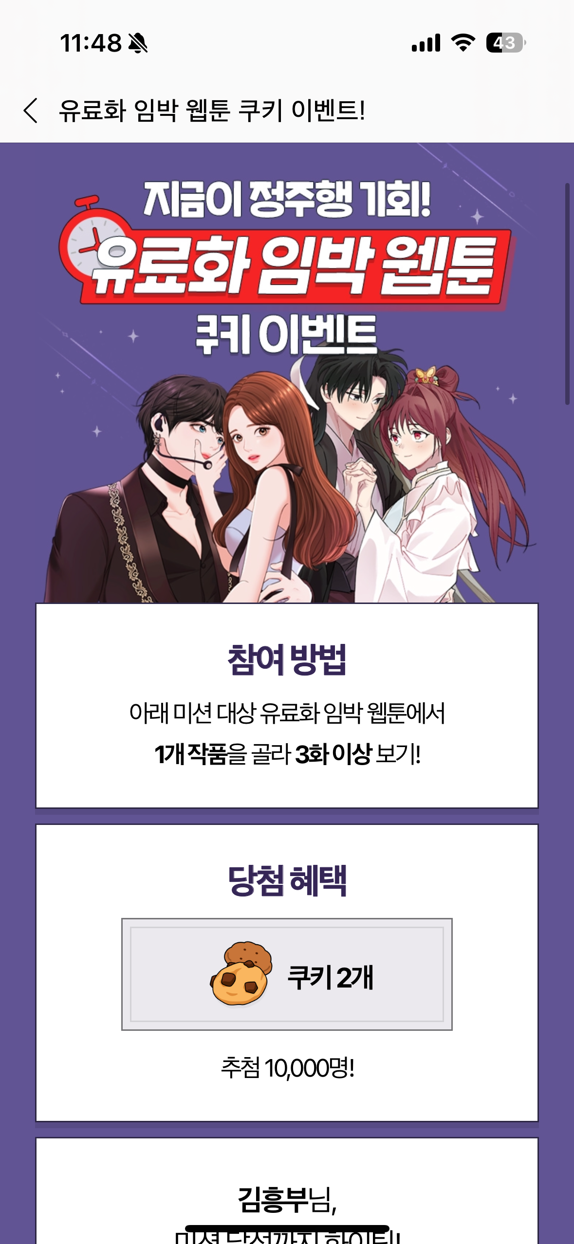 지금까지 네이버 웹툰 무료쿠키 얻는 방법에 대해 알아봤습니다!