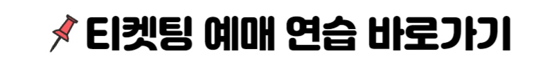 예매하기 정말 힘든 상황이니 꼭 숙지하시고 미리 연습해 보시기 바랍니다. 그리고 아래 배너는 '티켓팅 연습'을 할 수 있는 곳입니다. 어떤 좌석을 빠르게 선택할지 연습해 보시기 바랍니다. 보라색의 점을 누르는 연습을 통해 빠른 티켓 예매 실력을 키울 수 있습니다.