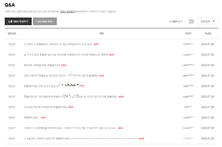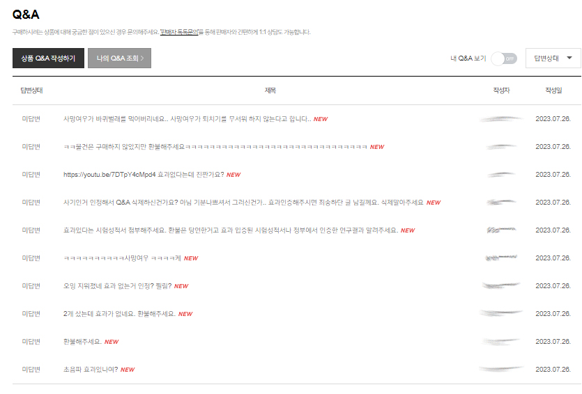 현재 제품 판매 페이지에는 환불을 요청하는 고객들의 게시글이 도배가 되고 있습니다. 이미 구매했던 사람들도 환불을 요청했고 환불받았다는 사람들의 후기도 나오는 것 보니 업체 측에서는 따로 입장표명을 하지는 않았지만 구매자에 대해서는 환불을 진행하는 것 같습니다.