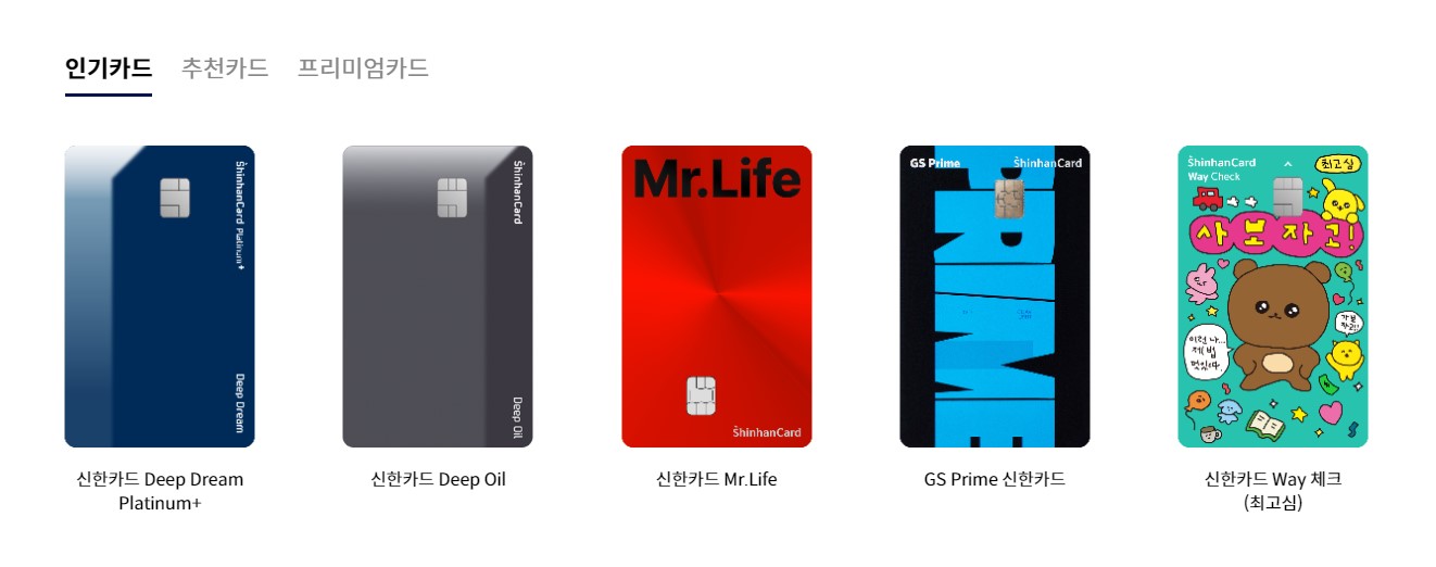 신한카드 추천 홈페이지 카드추천 미스터라이프 Mr.Life 카드 혜택 이벤트 (0) | 2023.07.30 |