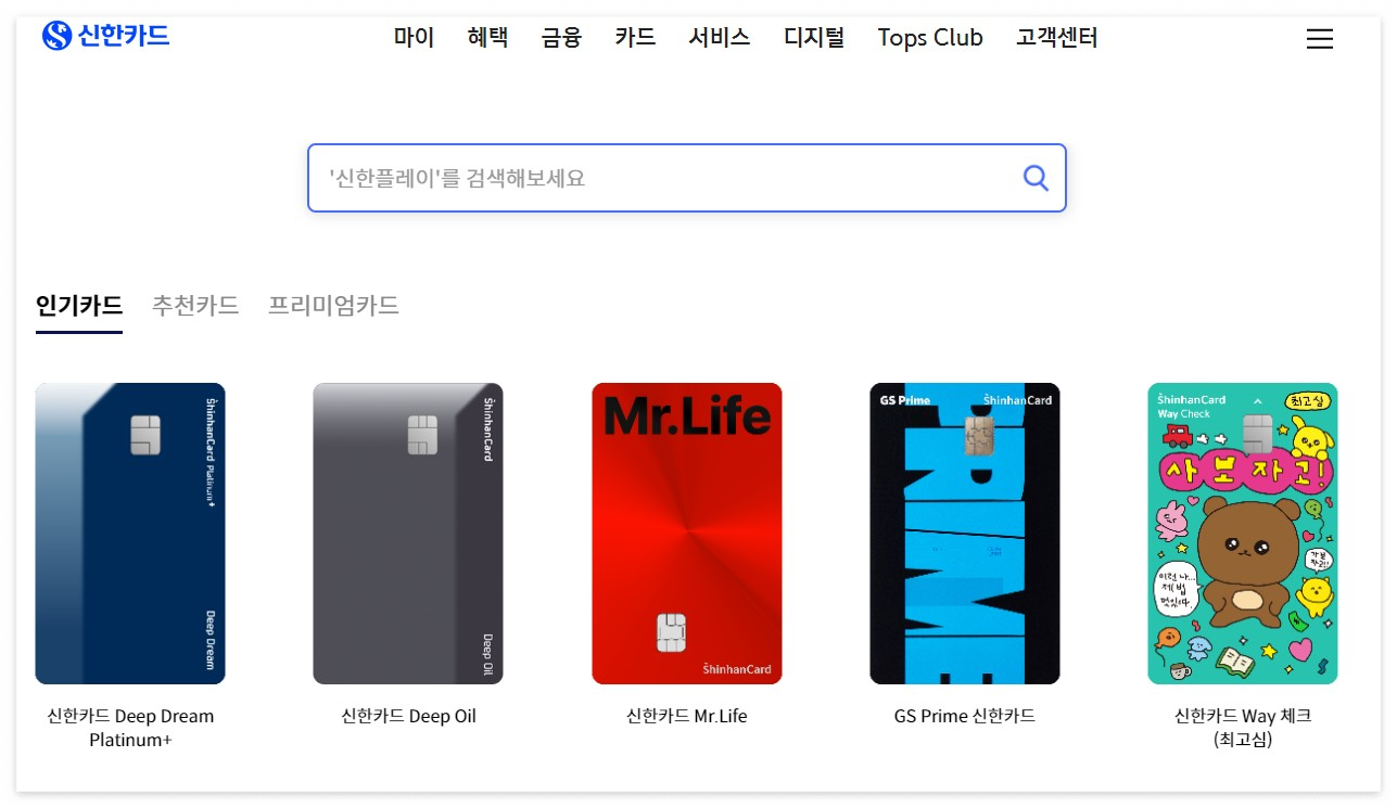 신한카드 홈페이지 제공
