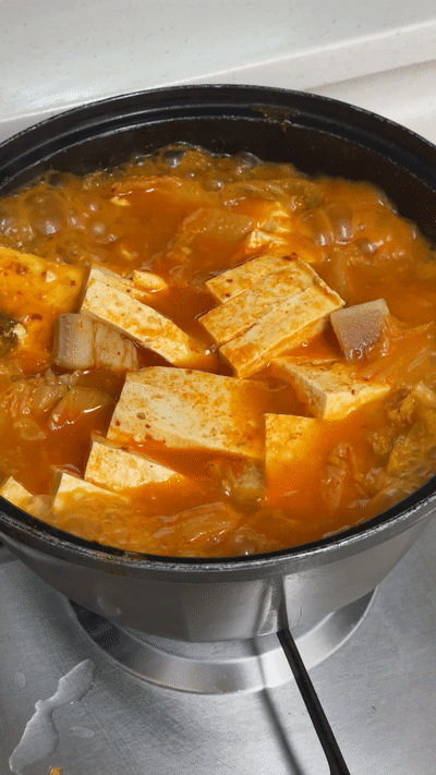 두부까지 넣고 보글보글 끓기 시작하니 진짜 김치찌개 비주얼이 완성됐는데요!
