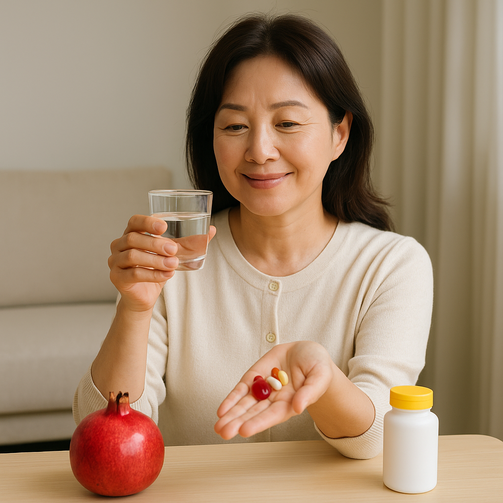 석류는 여성호르몬과 유사한 식물성 에스트로겐을 함유하고 있어서 갱년기 증상(안면홍조, 기분 변화 등)에 도움을 줄 수 있어요.