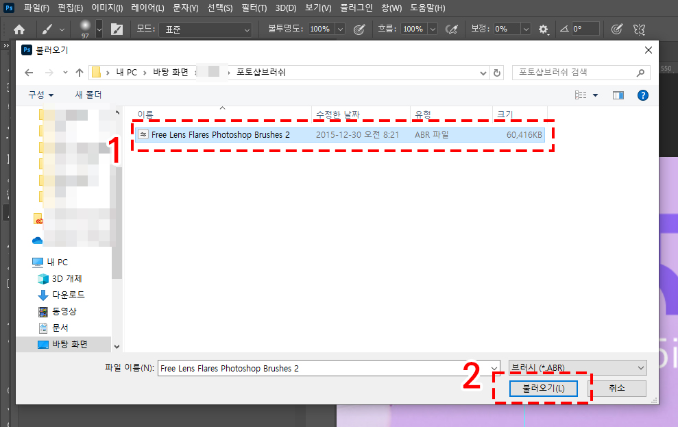3) 원하는 브러쉬 파일 선택 후 불러오기 클릭