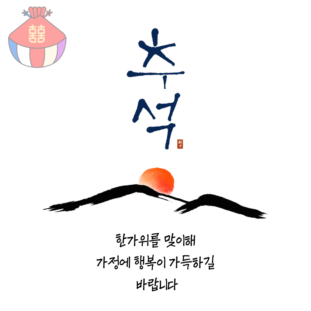 마음이 풍성해지는 가을입니다. 추석연휴 동안 온 가족이 함께하는 넉넉하고 풍성한 한가위 보내세요.