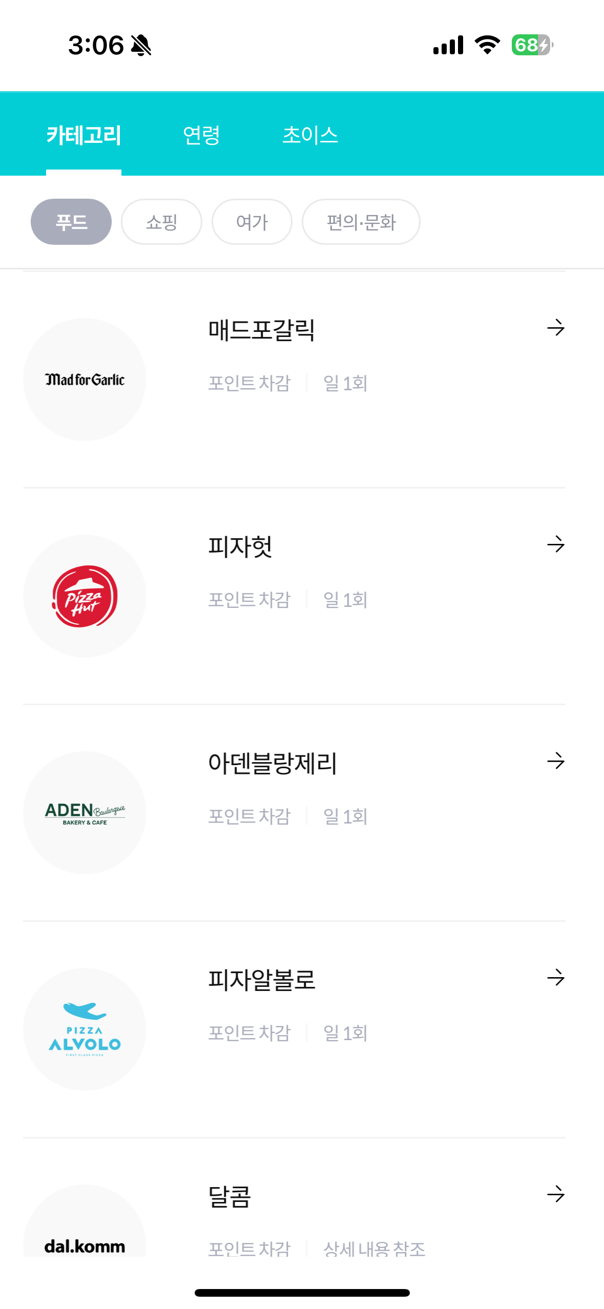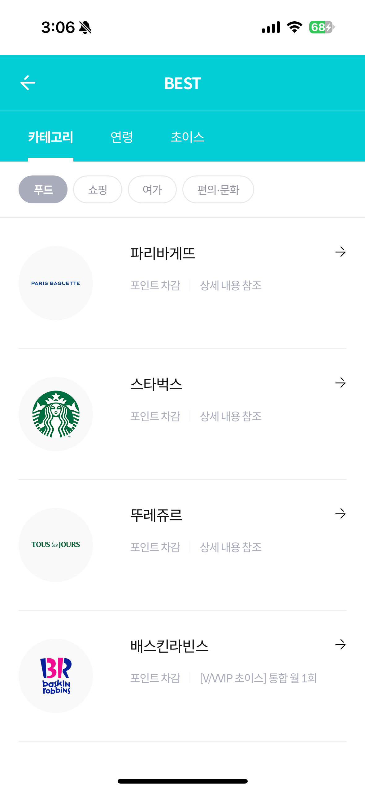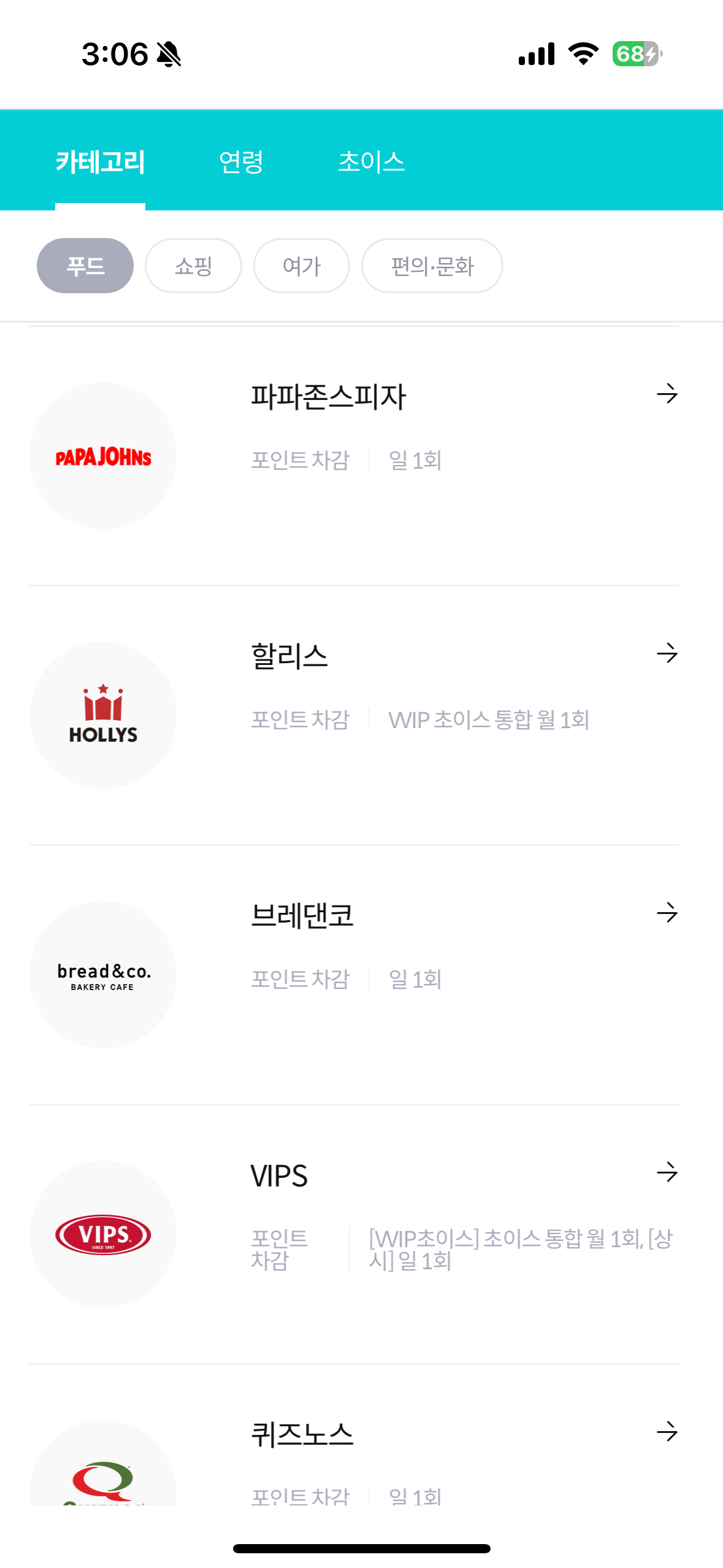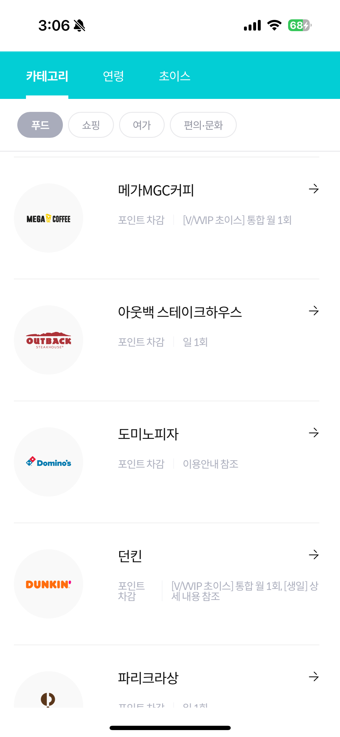 세 번째로 다양하게 활용할 수 있는 KT 멤버십 서비스는 바로 푸드 카테고리입니다!